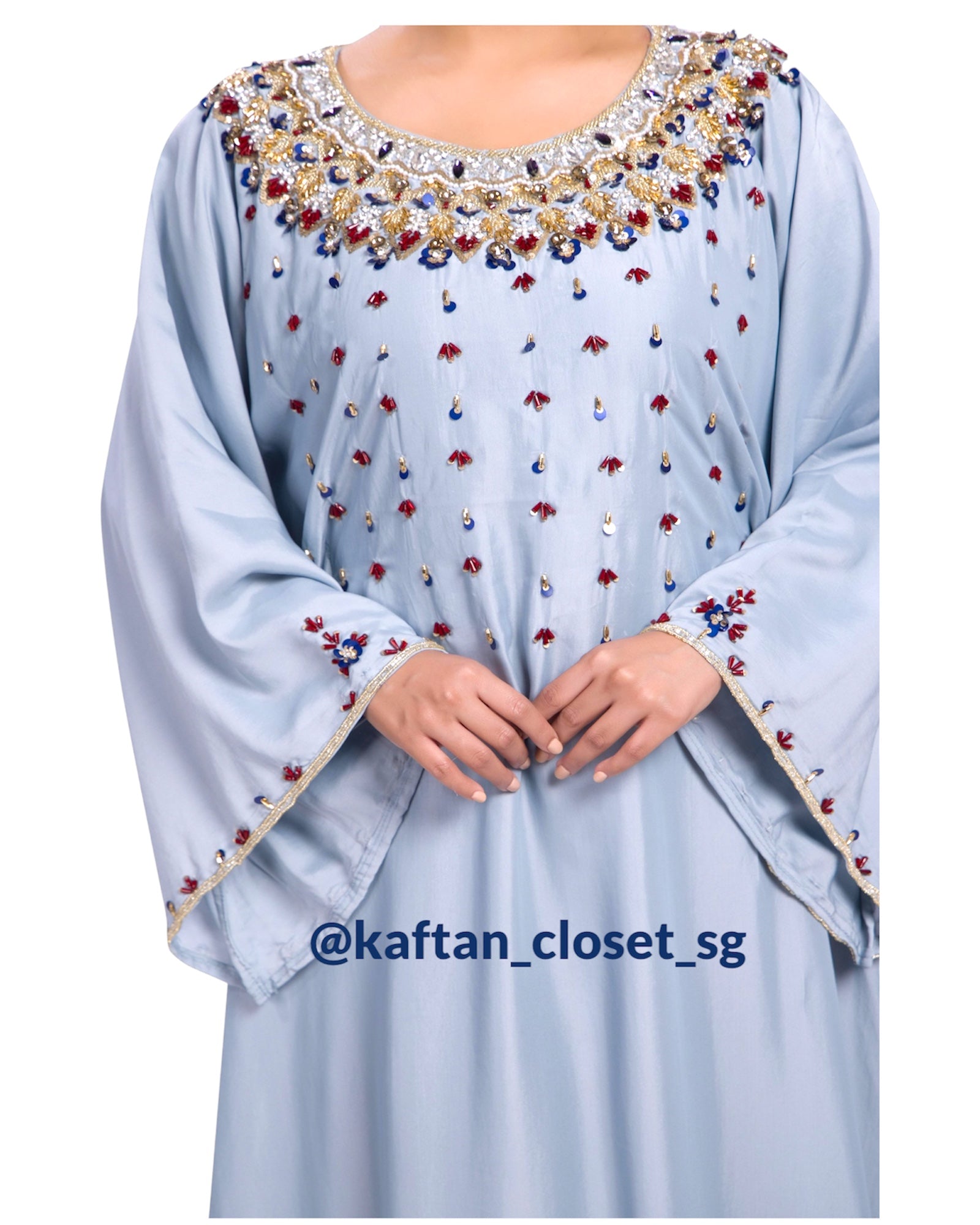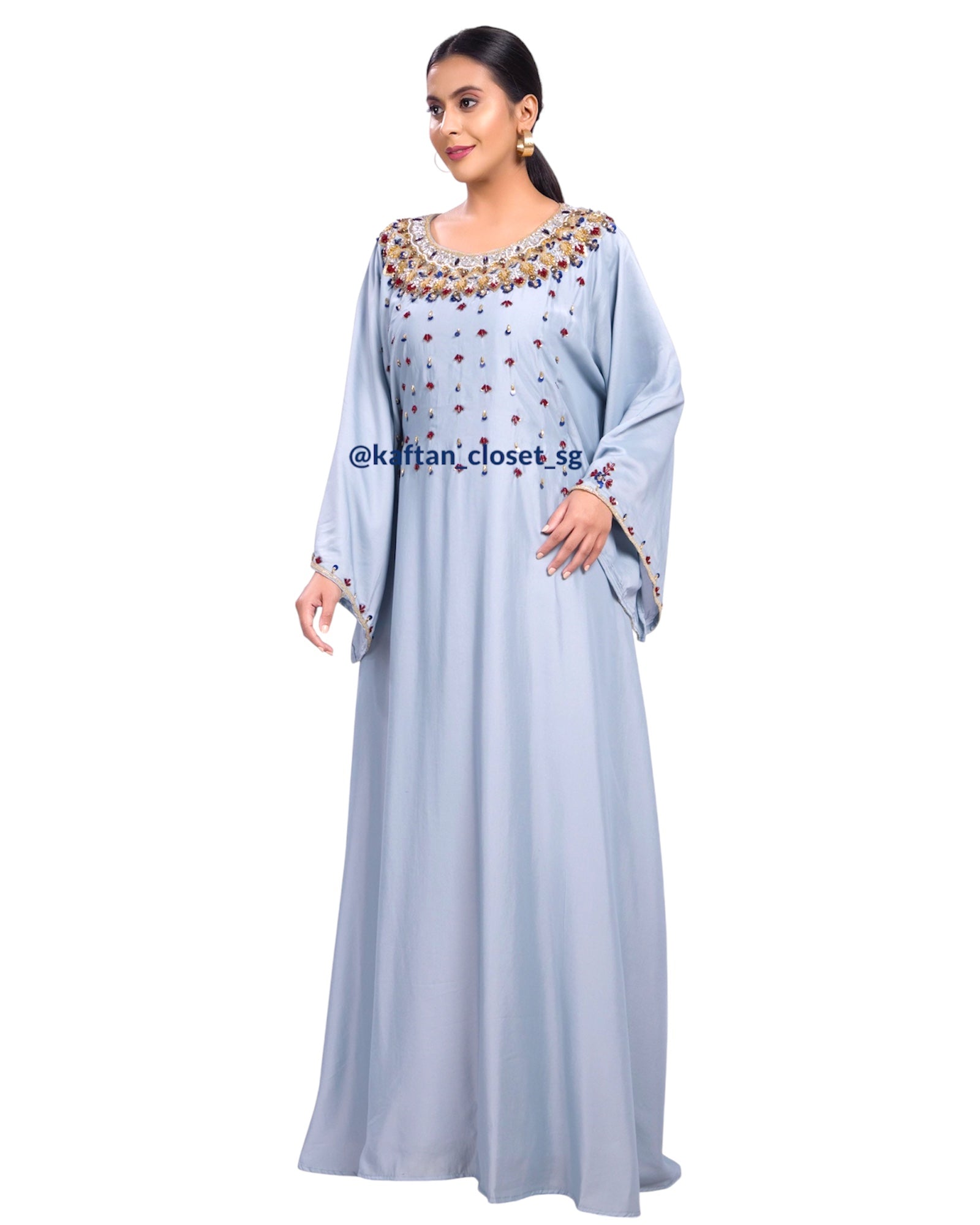 "Take a daring step with the Allure Series dress! The multicolour contrast stonework in the boat neck A line cutting commands attention. With a flexible fit up to bust 52 inches and a tie back for a customized fit, this dress is perfect for anyoccasiona."
