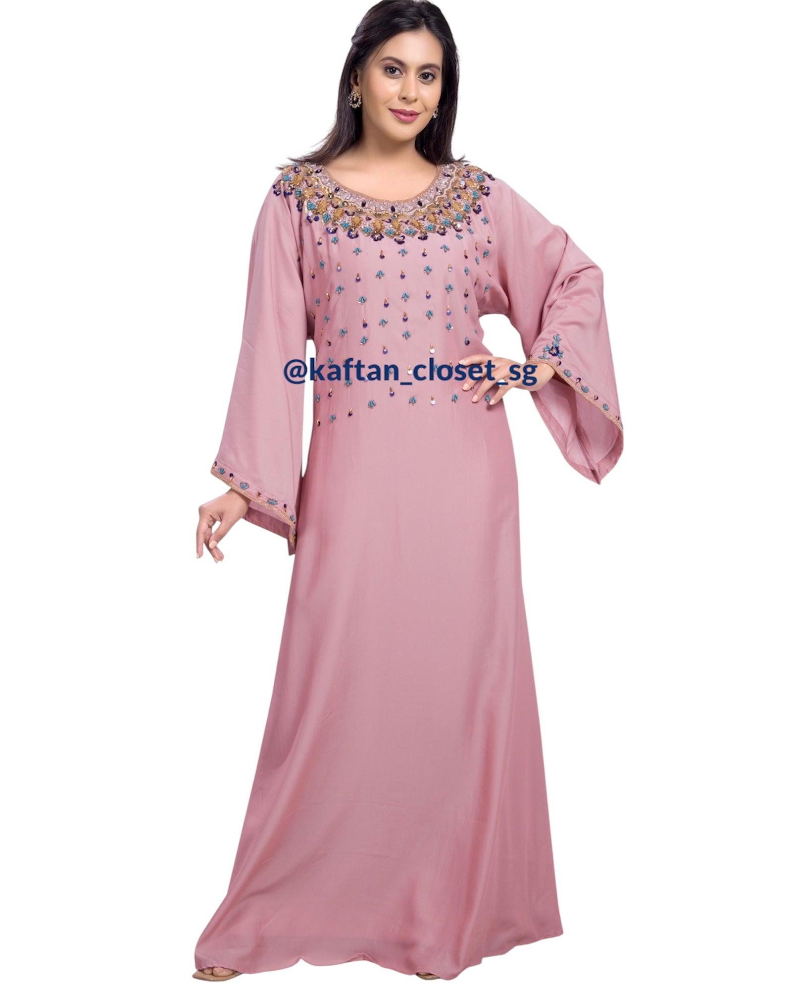 "Take a daring step with the Allure Series dress! The multicolour contrast stonework in the boat neck A line cutting commands attention. With a flexible fit up to bust 52 inches and a tie back for a customized fit, this dress is perfect for anyoccasiona."