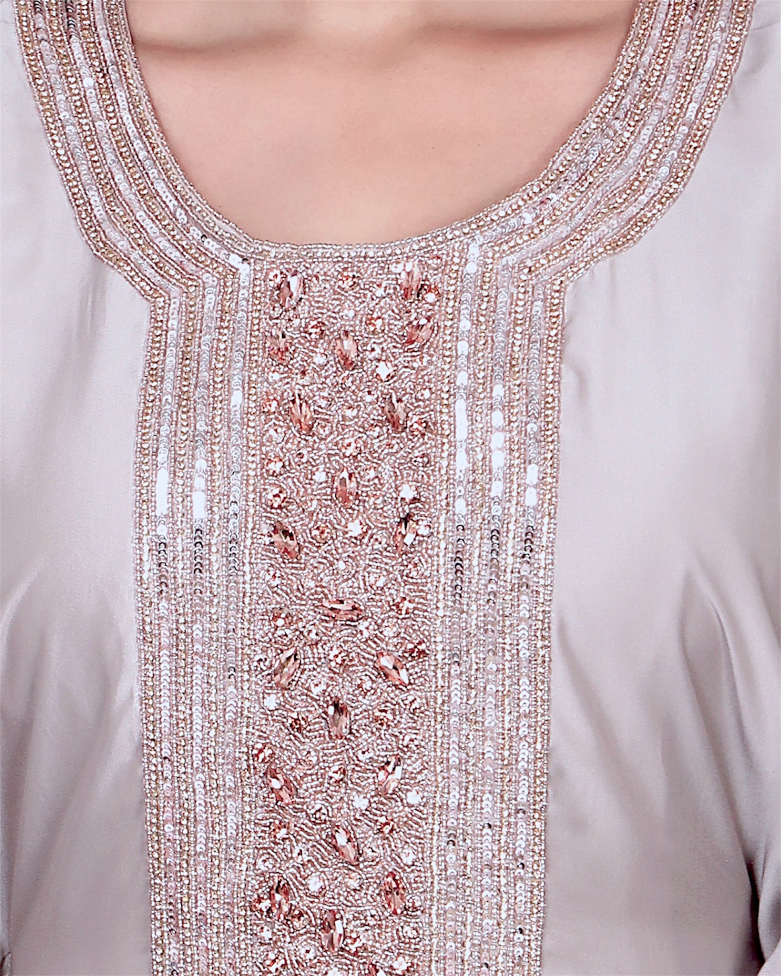 Introducing the Amoura Series- Silver Khaki! Experience the luxurious comfort of lightweight fabric adorned with intricate 3D rose gold motifs. This sleeveless inner comes in a free size that fits up to a bust of 54 inches, and includes a tie back for a customizable fit. Add elegance to your wardrobe today!
