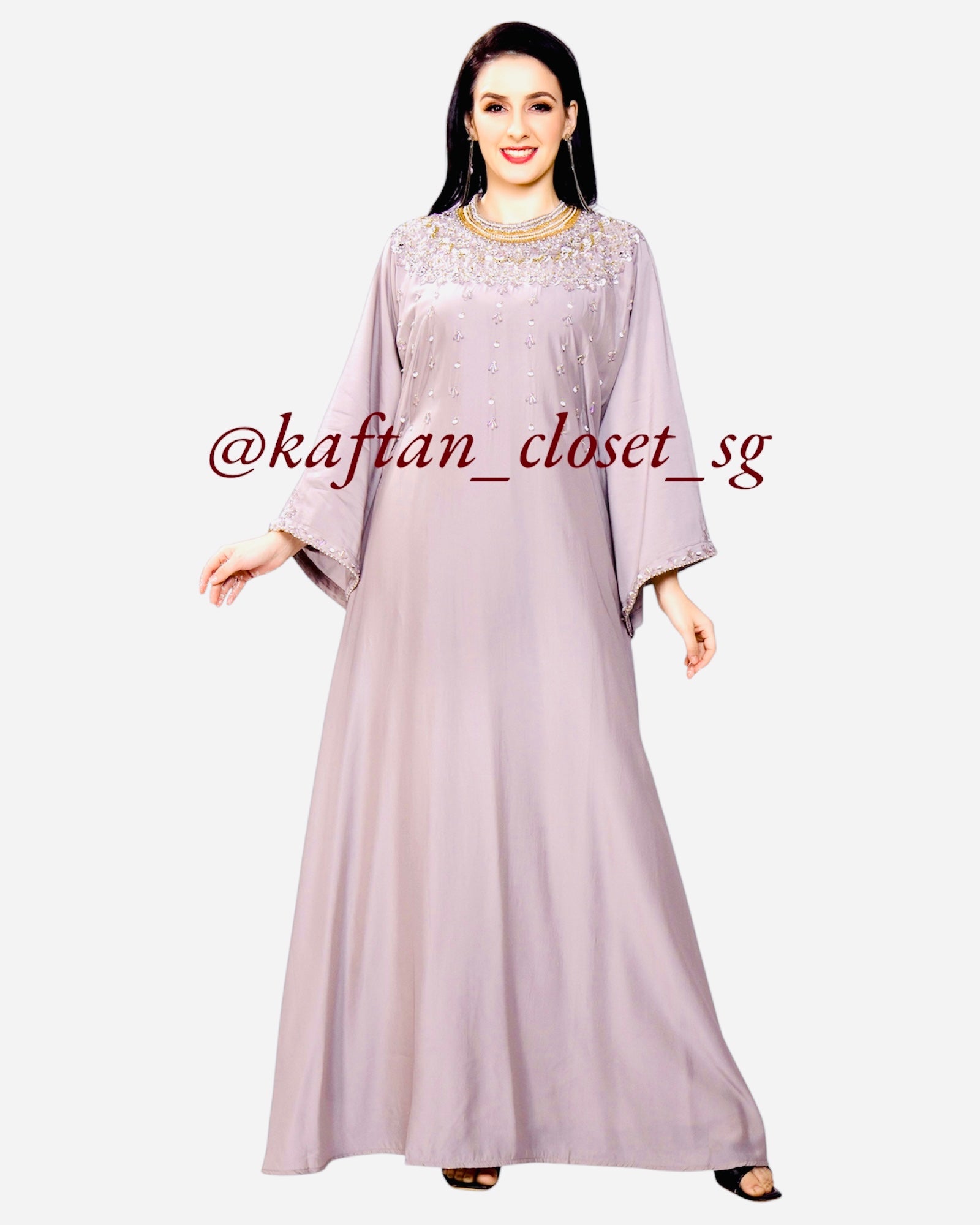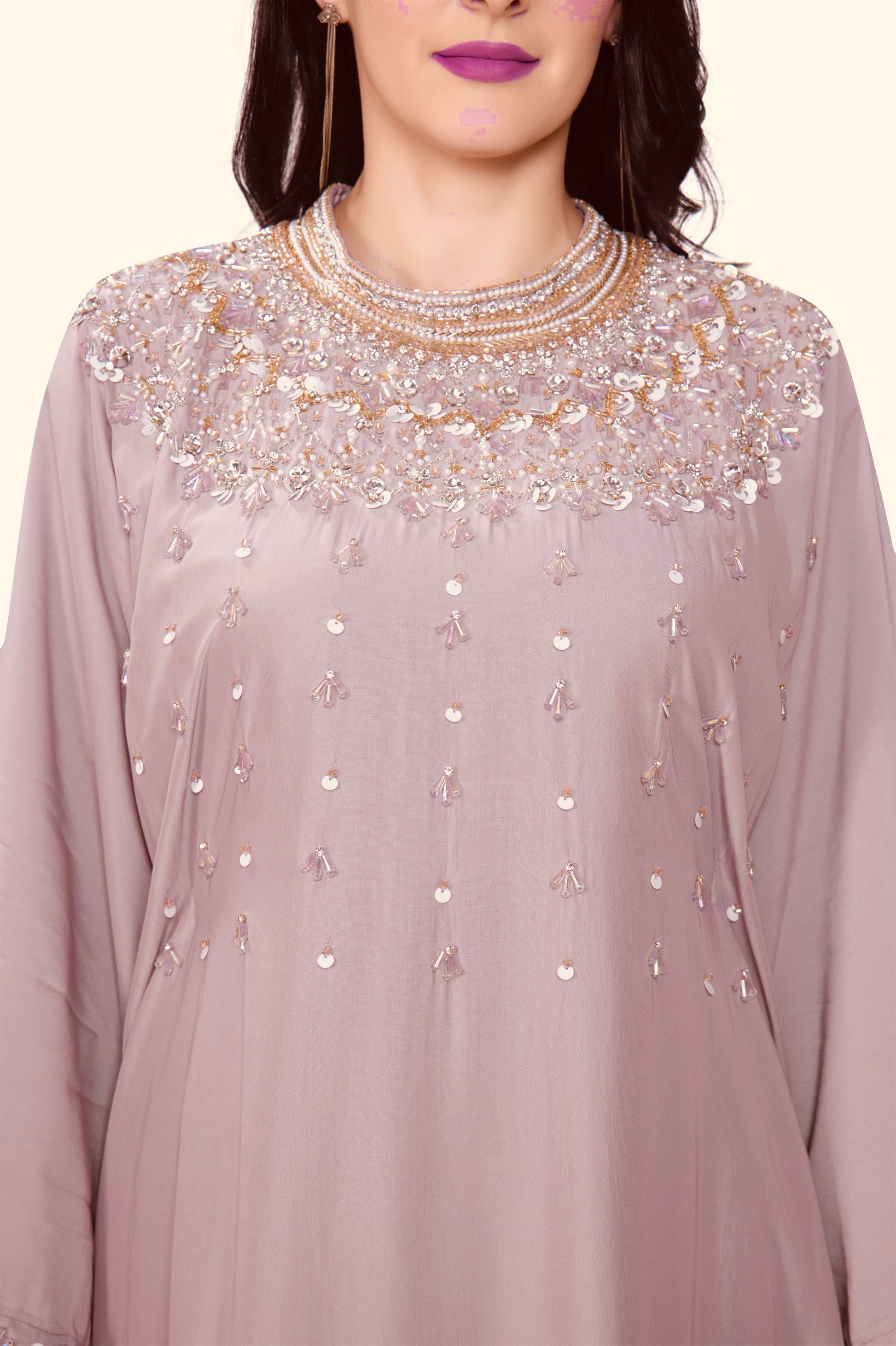 The Bijou Series is a stunning collection of silk blend dresses featuring matching stonework and exquisite gold and silver embellishments. High neckline and adjustable tie back, these dresses offer a customizable and comfortable fit. Available in delicate shades of powder blue, baby pink, and sage green, these high neck dresses with full sleeves exude sophistication and style. Available in a free size that fits up to a bust of 50 inches and a ptp of 25 inches, these dresses also come with full inner sleeves and a range of lengths from 52 to 58 inches. Elevate your wardrobe with the Bijou Series.