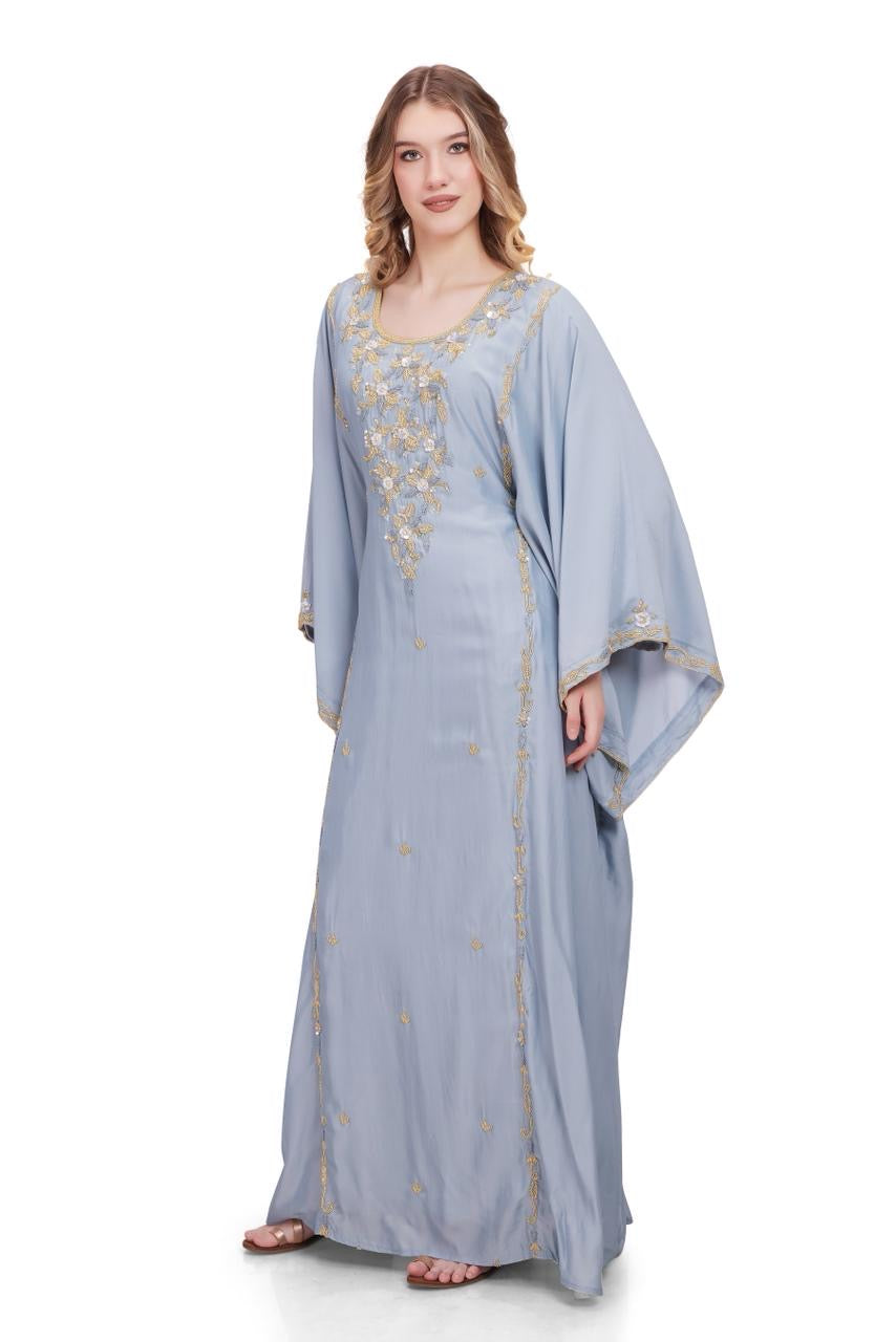 Indulge in luxury with our Demetra Series, featuring a wide sleeve cutting adorned with a beautiful mix of gold and delicate threadwork. Experience the unparalleled craftsmanship and elegance of this exquisite piece, perfect for any occasion. Elevate your style with Demetra.